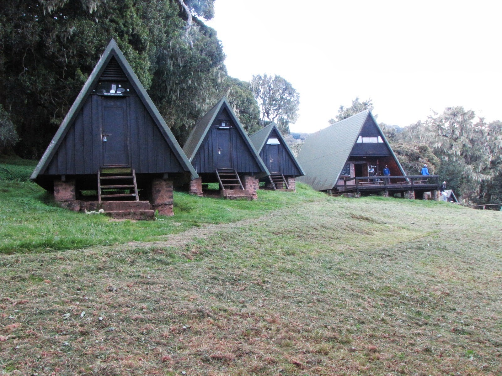 Our destination today is Mandara Hut, a camp with A-frame sleeping huts, dining hall, toilets and staff quarters. The daily routine, after hiking is completed, is the provision of warm wash basins for a quick wipe and then an invite to the dining hall for tea, coffee and yes – even a tray of popcorn. A break follows where you can wander the grounds and chat with others who are also arriving. On the first night we did a hike before dinner for about a half-hour to “climb high sleep low”. Really just to acclimate to the elevation. Dinner and then sleep!
