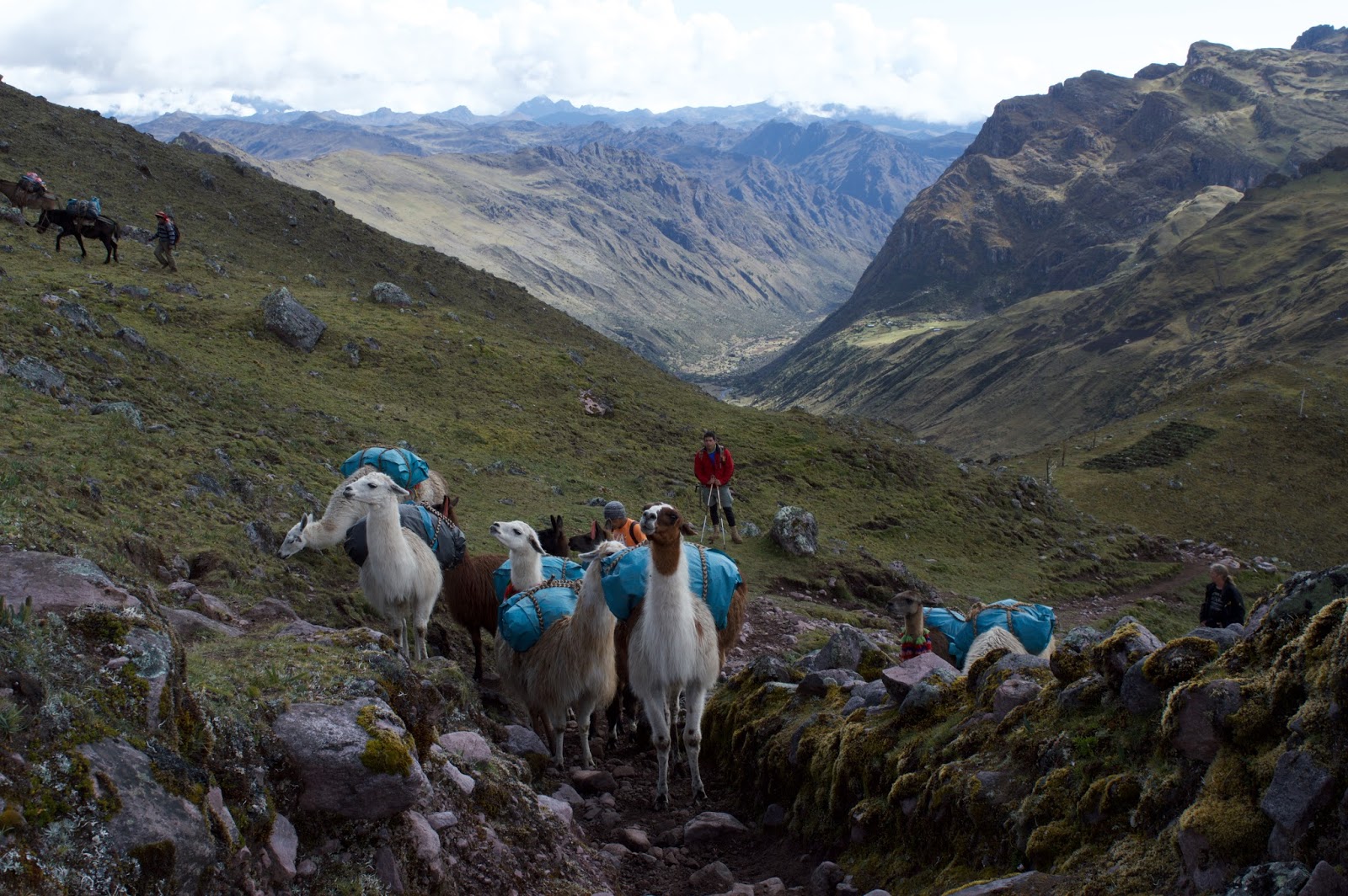 You sleep in tents, enjoying a hot cup of coca tea on those cool mornings (about 0 degrees). Full breakfast, lunch and dinners are prepared served by a fantastic group of cooks and porters that travel ahead of us with their teams of horses and alpacas.