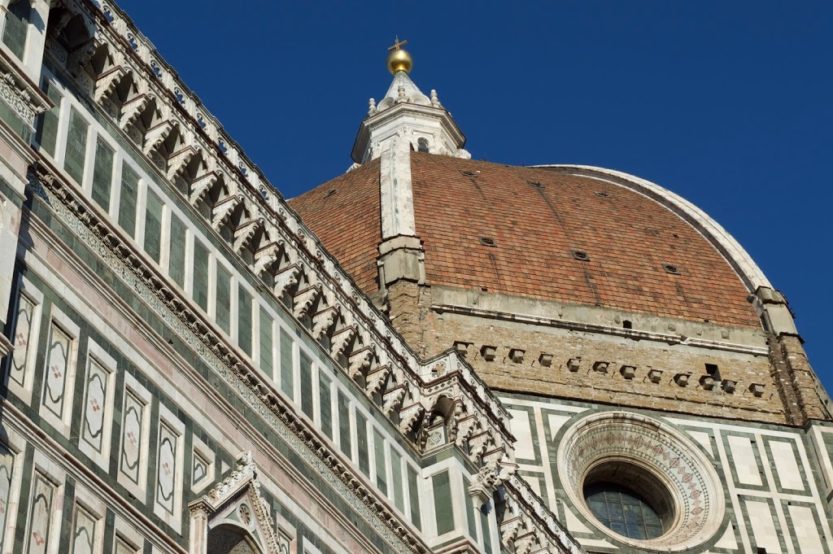 The Ponte Vecchio aka “The Old Bridge” is a famous Florence landmark spanning the Arno River. It has a crazy number of gold and jewellry shops that attract the shoppers. We were fortunate to arrive there as the sun was just going down and the Arno River was as calm as glass. To be truthful, while my travels mates were shopping I was more interested in taking a few pics. Visitors are able to climb to the top of the Duomo but unfortunately for us – they are fully booked until Sunday. The other option is to climb the tower adjoining the Duomo called the Campanile Bell Tower which is 400+ steps. It offers pretty awesome views of the city after a little investment in sweat equity. The pic above shows a scenic view of Florence stretching towards the Tuscan hills.